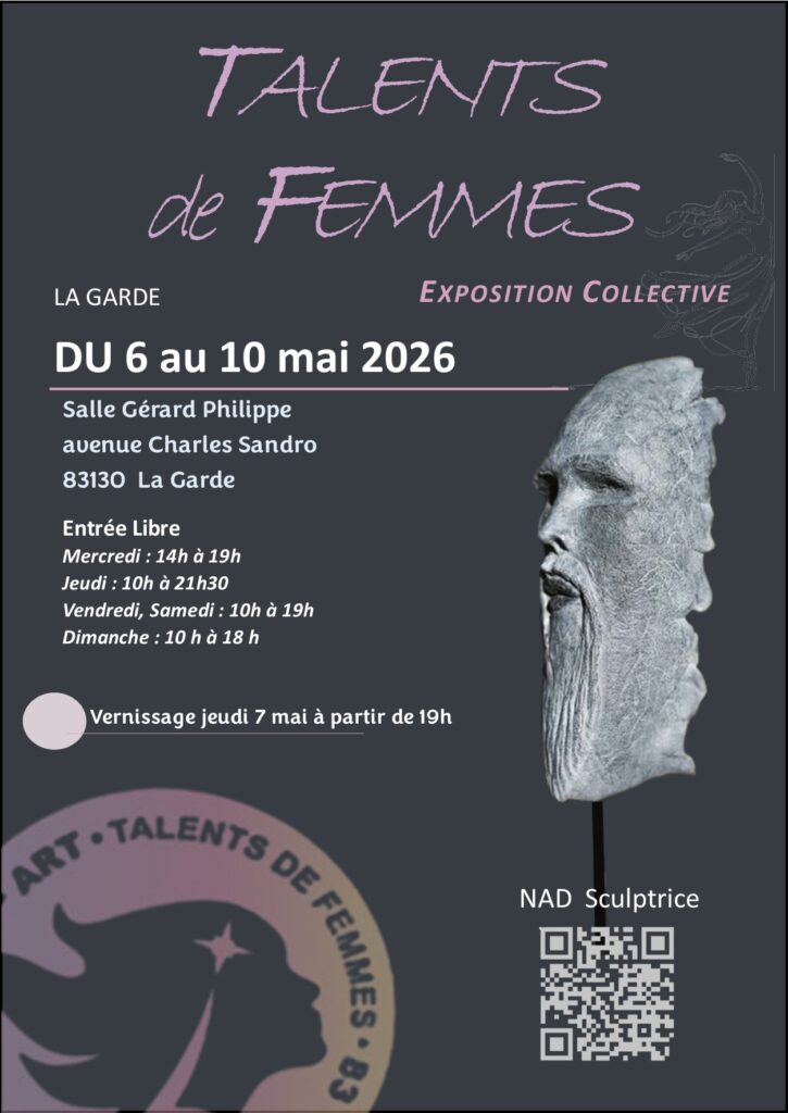 Cette exposition est l’occasion de découvrir une cinquantaine d’artistes animées par un désir de création. Je serai ravie de vous présenter huit créations à cette occasion à la salle Gérard Philippe de la Garde du 06 au 10 mai 2026.